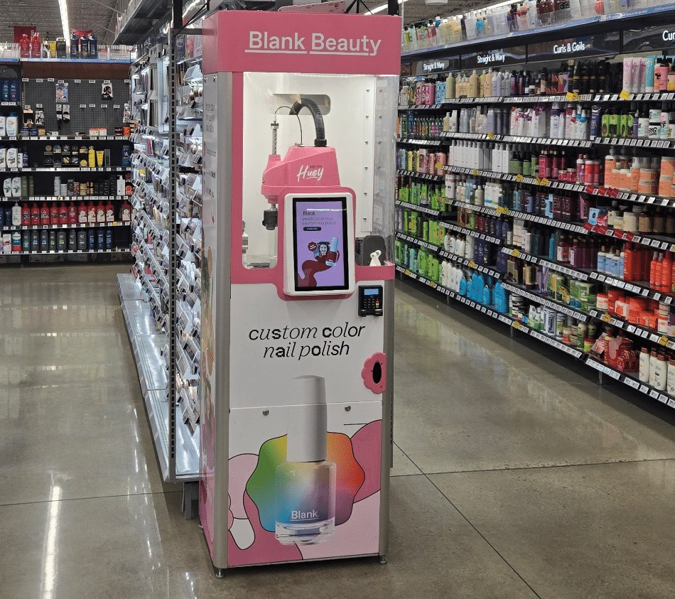Blank Beauty 的主力產品 Huey,是一款指甲油製造及販售終端機,顧客只要出示智慧型手機上的照片等樣本色,Huey 便能在大約 2 分鐘內依照需求製作出商品,可說是一座智慧工廠。據稱使用精細的影像解析技術可重現的色彩變化多達約 1 萬 2,000 種。