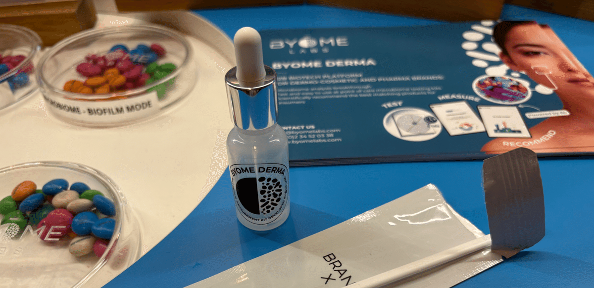 在零售部門獲得創新顧客體驗獎項的是 2023 年底成立的法國生物科技新創公司 BYOME LABS。該公司在實體店面的諮詢環節中,於現場採集並分析顧客的皮膚微生態(菌群),並利用 AI 技術為顧客提供最合適的產品建議。