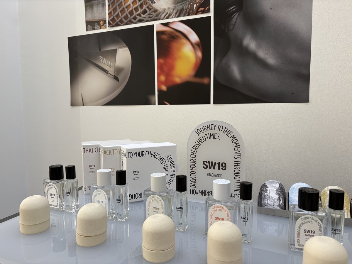 此外,2020年創立、已進軍包含日本在內亞洲多國的「SW19」亦參展。品牌名稱來自創辦人曾居住的倫敦溫布頓郵遞區號(SW19),產品名稱如「6am」「9pm」「Midnight」等,以時間為主題,描繪當地自然環境與時間流動的氣味變化。原料堅持100%法國來源,並與歐洲知名調香師合作,預計2026年進軍歐洲市場。