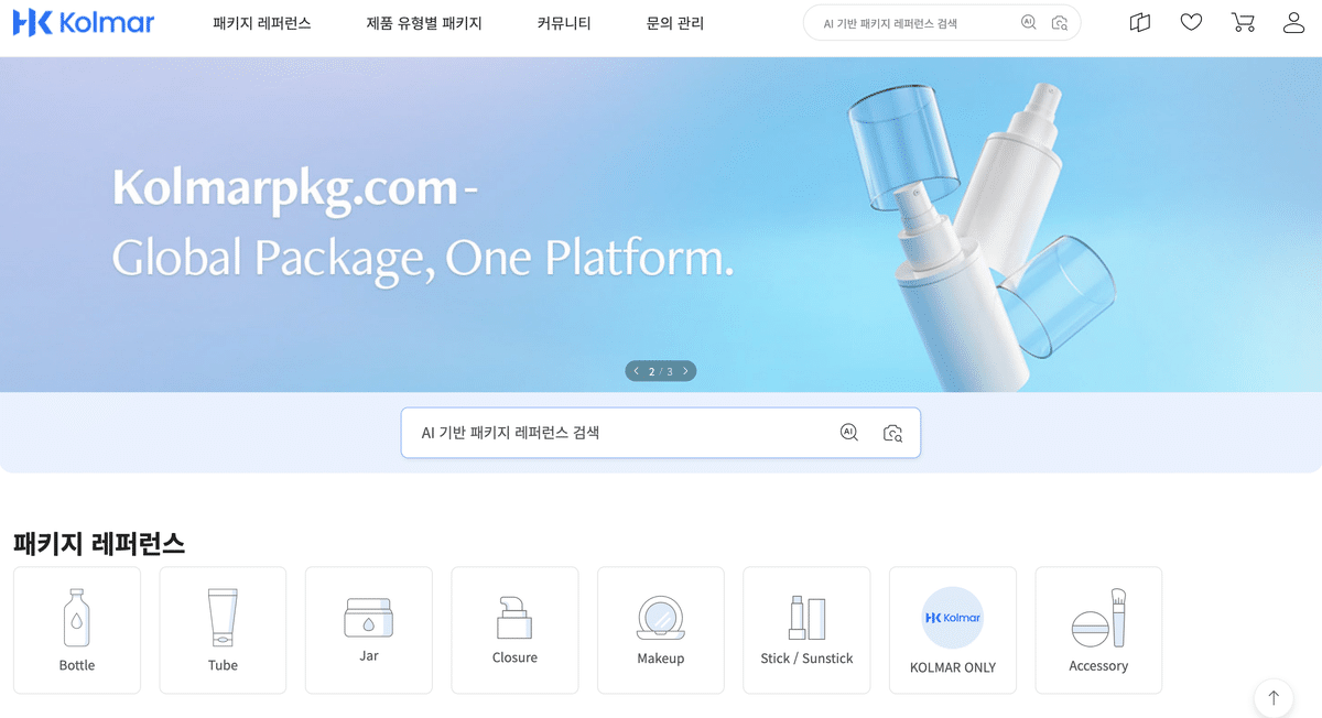 該平台讓品牌商及化妝品開發負責人,透過拍攝或上傳心儀容器的照片,由AI提取並分析形狀、質感等特徵,列出相近候選選項。此外,還可按瓶身、管狀等類別、容量、尺寸、生產國等條件進行篩選,短時間內完成比較與遴選。平台登錄的包材品項約4,000種,並支援含關稅及物流費的即時報價。韓國柯瑪表示,使用「Kolmar Package.com」後,過去需要3至6個月的選定到備料流程,最快可縮短至1個月以內。