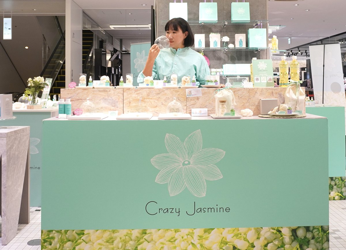 活動攤位上,Crazy Jasmine香水旁邊不經意地陳列著3至4瓶Relax Jasmine Tea。實際上,購買香水的顧客看到那款飲料,也會說「想喝茉莉花茶了」而順手購買,向田女士從一開始就構想的「Relax Jasmine Tea的成長空間」,正在攤位上形成循環。